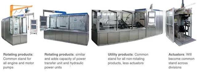 HSD引入了通用測試臺架,并對新臺架做出戰(zhàn)略性部署 – 經(jīng)規(guī)劃,單個通用臺架擁有多種測試能力,取代并減少原有單一用途臺架的數(shù)量。發(fā)展到現(xiàn)在,通用臺架能支持不同零件的測試工作。此項改變將HSD總部工廠的臺架數(shù)量從83個減少到不到40個,測試臺配置也從70多種降低到只有16種,大幅度提升運作效率。此外,機器數(shù)量的減少和生產(chǎn)效率的提高也能幫助降低能耗及使用成本。